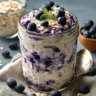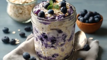 Blaubeer-Hüttenkäse-Overnight-Oats