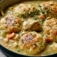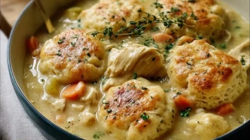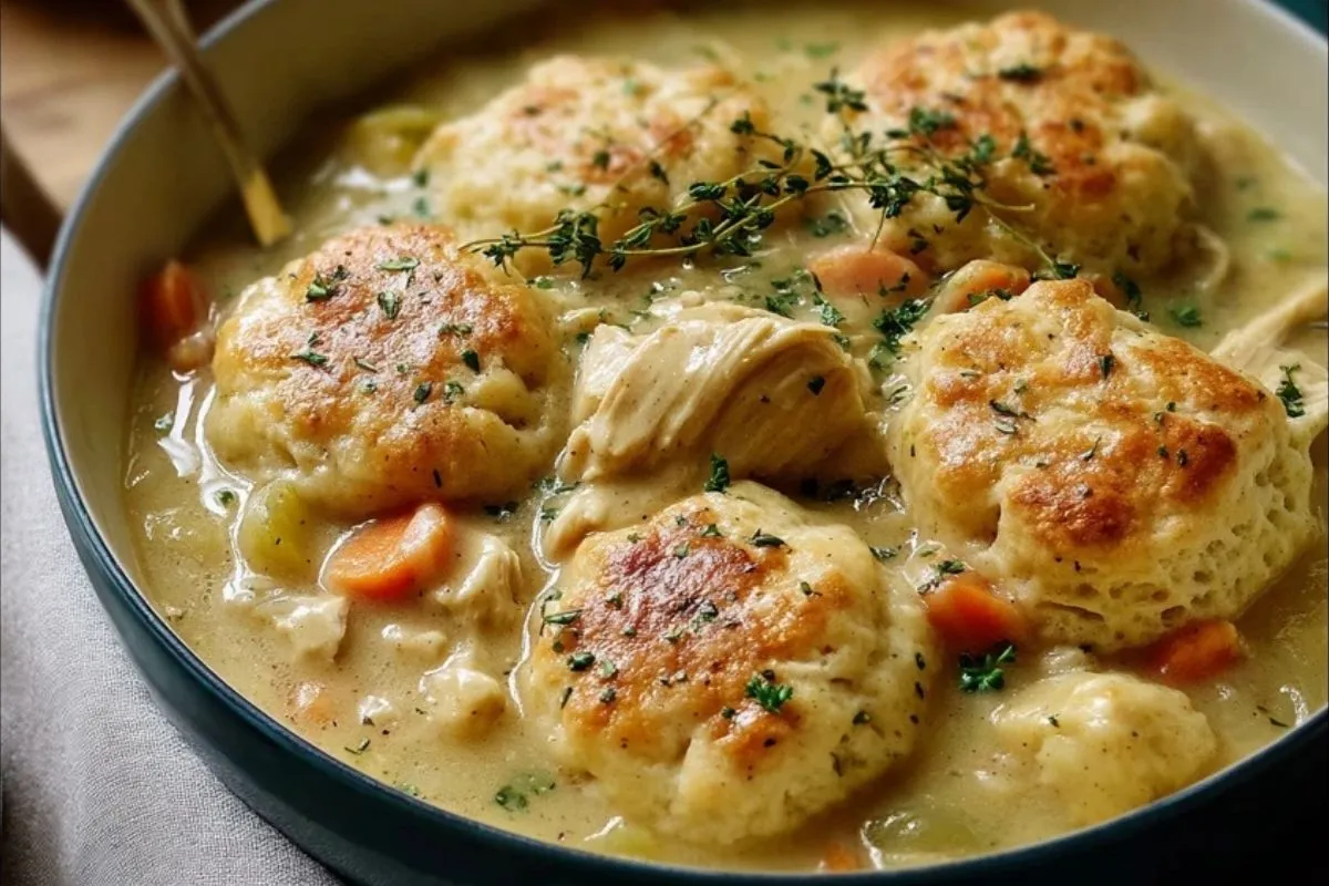 Herzhafte Hähnchen und Knödel mit Biscuits