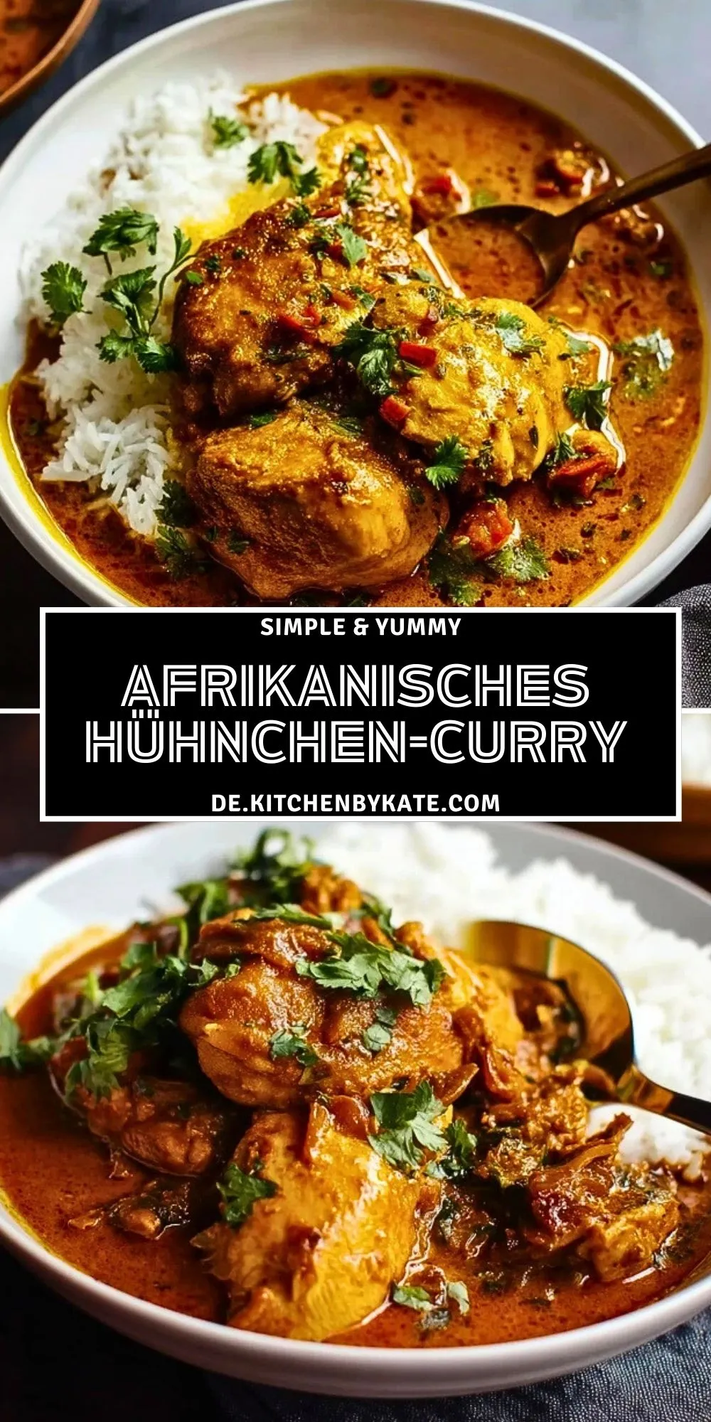 Kremiges afrikanisches Hühnchen-Curry mit Kokosmilch, Erdnussbutter, aromatischen Gewürzen und zartem Hähnchenfleisch – perfekt für ein wärmendes Familienessen, das sich schnell und unkompliziert zubereiten lässt.