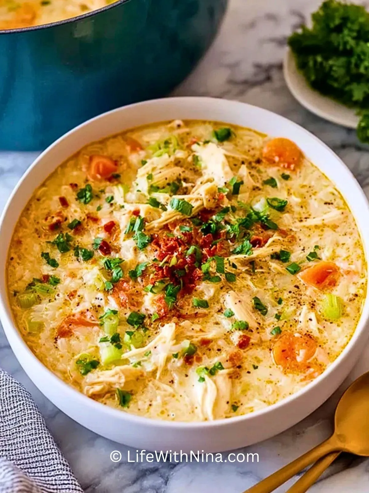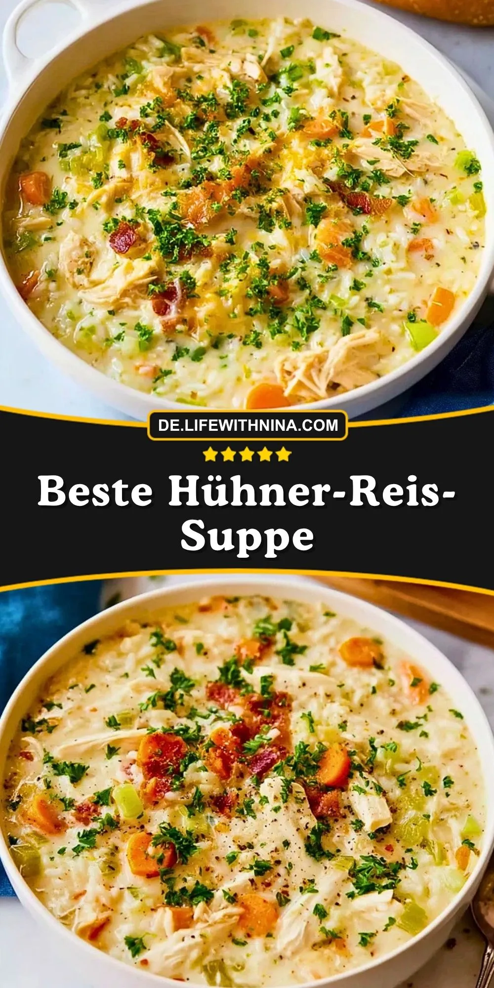 Weil sie genau die richtige Balance aus cremig, herzhaft und leicht bekömmlich trifft. Das Hähnchen sorgt für eine angenehme Sättigung, der Reis macht die Suppe besonders sanft und das Gemüse bringt Frische und Struktur hinein. Gleichzeitig lässt sich das Rezept einfach anpassen, sodass es sowohl alltagstauglich als auch ideal für Gäste ist.