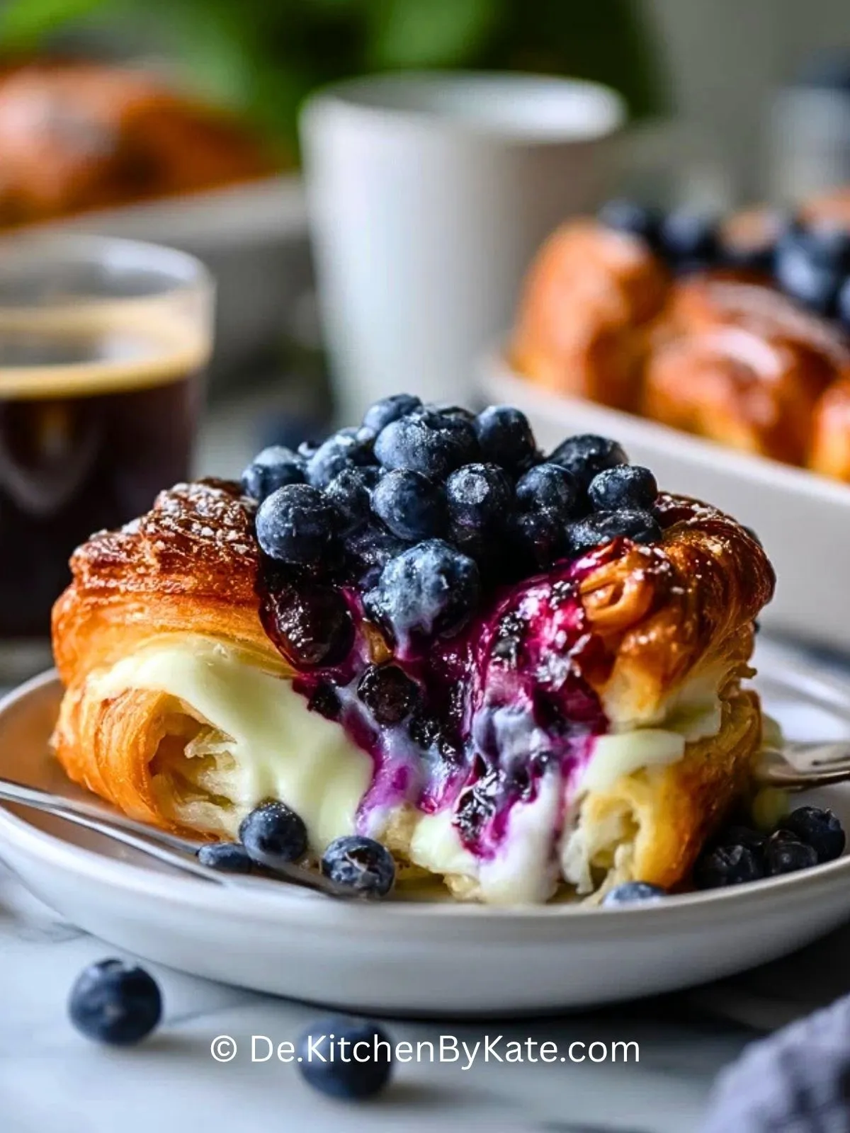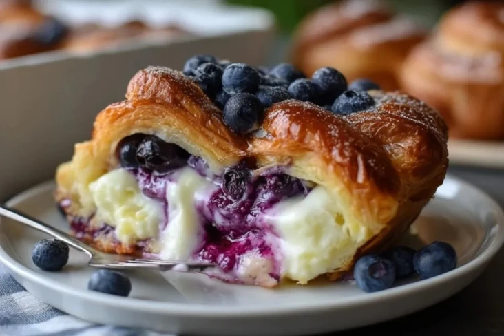 Besonders schön an diesem Rezept ist, dass es vertraute Zutaten in ein Dessert oder süßes Frühstück verwandelt, das nach viel mehr Aufwand aussieht, als es tatsächlich braucht. Die Croissants saugen die Eier-Sahne-Mischung auf, während der Frischkäse für eine fast cheesecakeartige Cremigkeit sorgt. Jeder Löffel bringt knusprige Ränder, luftige Teigschichten und warme Blaubeerfrucht zusammen.
