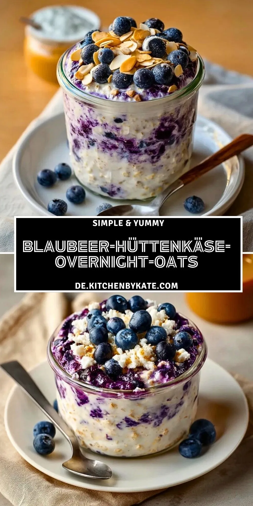 Keywords: Blaubeer-Hüttenkäse-Overnight-Oats, Overnight Oats, Frühstück im Glas, eiweißreiches Frühstück, Haferflocken Rezept