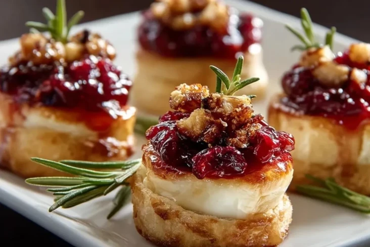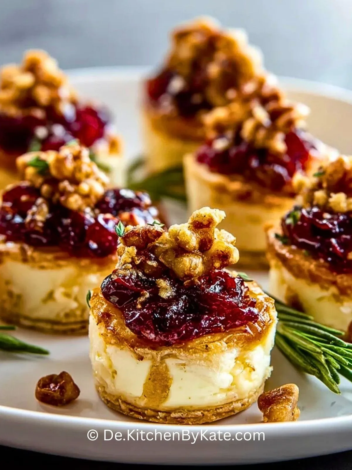Warme, knusprige Blätterteighäppchen mit geschmolzenem Brie, fruchtiger Cranberry-Sauce, karamellisierten Walnüssen und frischem Rosmarin – das perfekte Fingerfood für besondere Anlässe oder einfach für einen gemütlichen Abend.