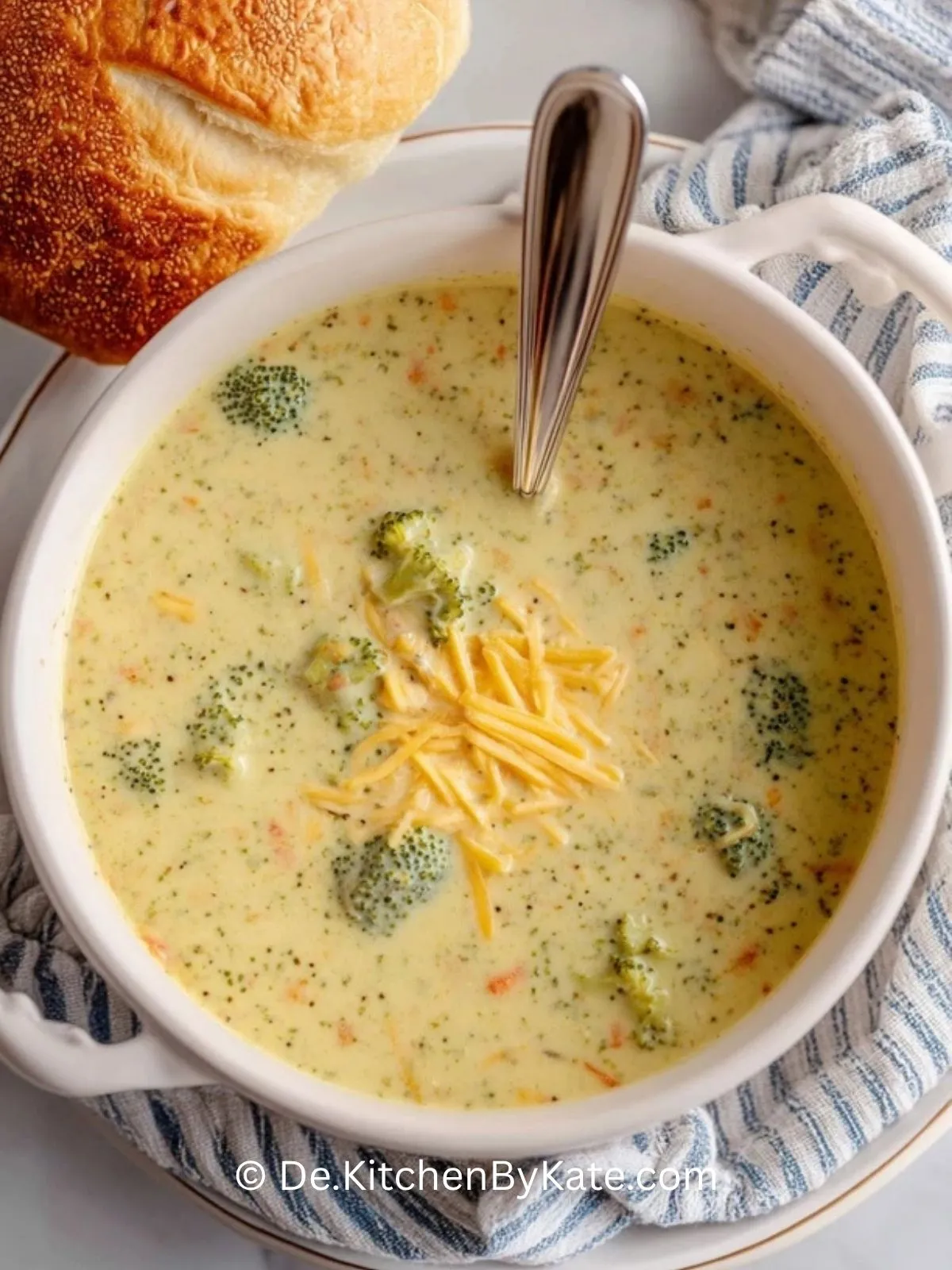 Eine cremige Brokkoli-Cheddar-Suppe mit zartem Brokkoli, würzigem Cheddar und feinen Aromen von Zwiebel, Knoblauch und Muskat. Perfekt als gemütliches Mittagessen oder schnelles Abendessen und besonders lecker mit frischem Brot serviert.