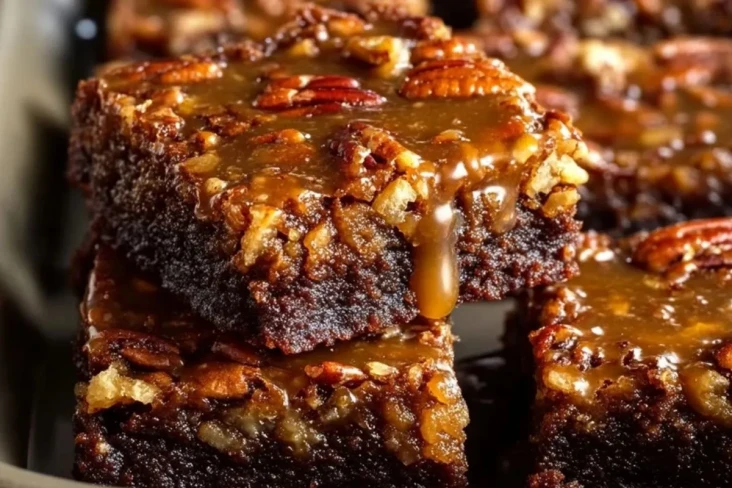 Saftige, schokoladige Brownies mit einer dicken Schicht Butter-Karamell und gerösteten Pekannüssen – ein unwiderstehliches Gebäck für Schokoladen- und Nussliebhaber. Perfekt zum Teilen, für den besonderen Anlass oder einfach zum Verwöhnen zwischendurch!