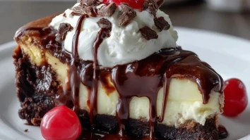 Schokoladenbrownie-Cheesecake mit heißer Schokoladensauce