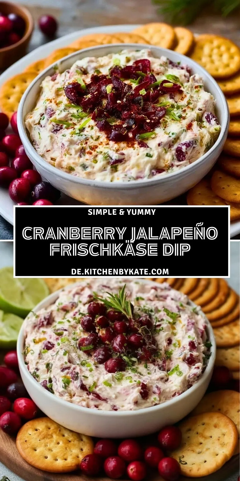 Keywords: Cranberry Jalapeño Frischkäse Dip, Party Dip, Weihnachtsdip, schneller Dip, Frischkäse, Jalapeño