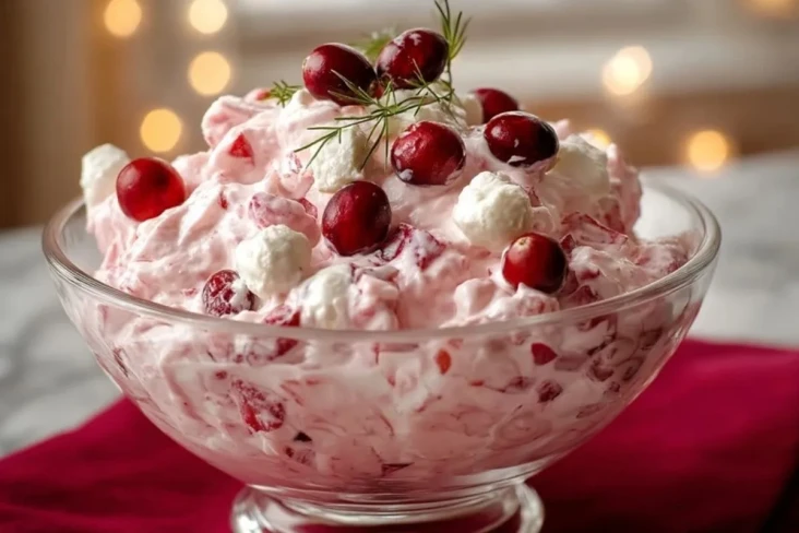 Die Kombination aus sahniger Fülle und den leicht herben Cranberrys macht diesen Salat so beliebt. Je nach Variante sorgen zusätzlich kleine Marshmallows, Früchte oder Nüsse für noch mehr Textur. Das Ergebnis ist ein luftiges, kühles Dessert, das sich wunderbar vorbereiten lässt und im Kühlschrank sogar noch besser durchzieht.