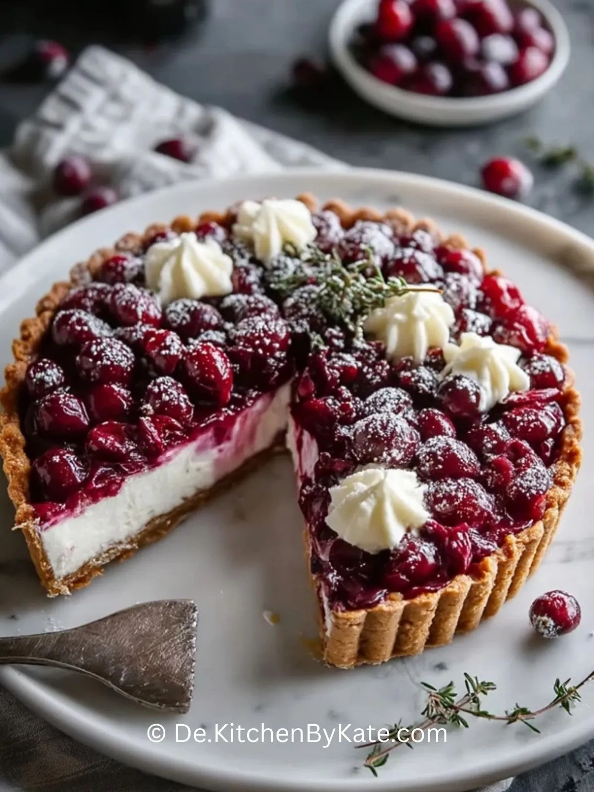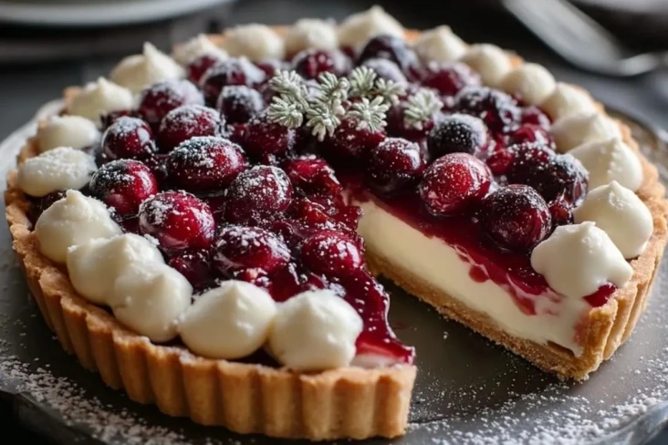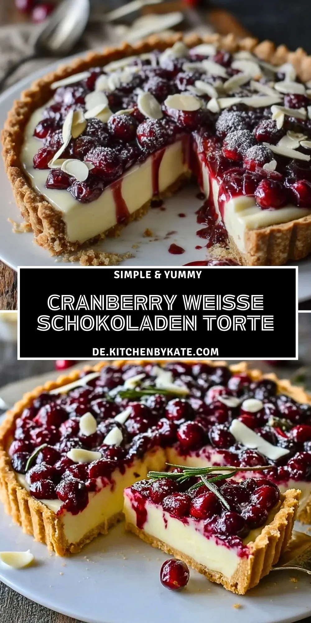 Diese Cranberry-Weiße-Schokoladen-Torte verbindet einen knusprigen Keksboden mit einer samtigen Creme aus weißer Schokolade und einem fruchtig-säuerlichen Cranberry-Topping – ein edles Festtagsdessert, das sich perfekt vorbereiten lässt.