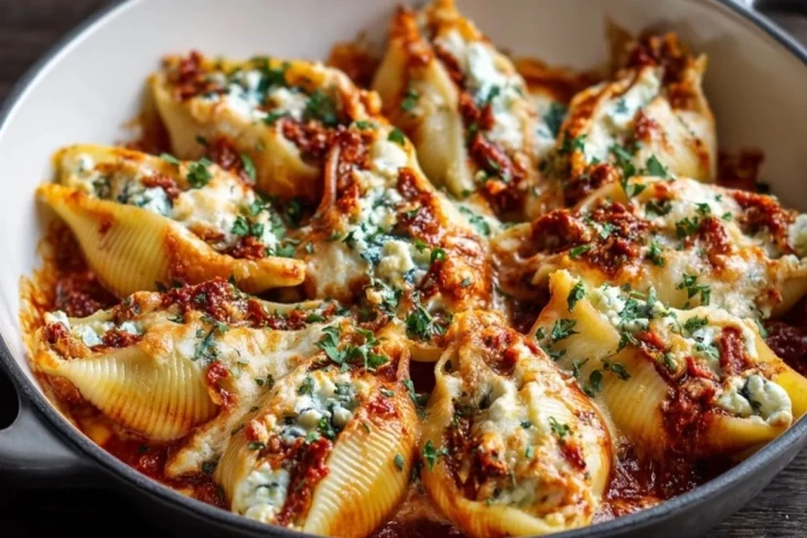 Cremige gefüllte Muscheln mit getrockneten Tomaten und Ricotta sind ein herzhaftes Ofengericht mit zarter Pasta, würziger Tomatensauce und einer wunderbar cremigen Käsefüllung. Dieses Rezept eignet sich perfekt für ein gemütliches Abendessen, lässt sich gut vorbereiten und schmeckt frisch aus dem Ofen genauso köstlich wie aufgewärmt am nächsten Tag.