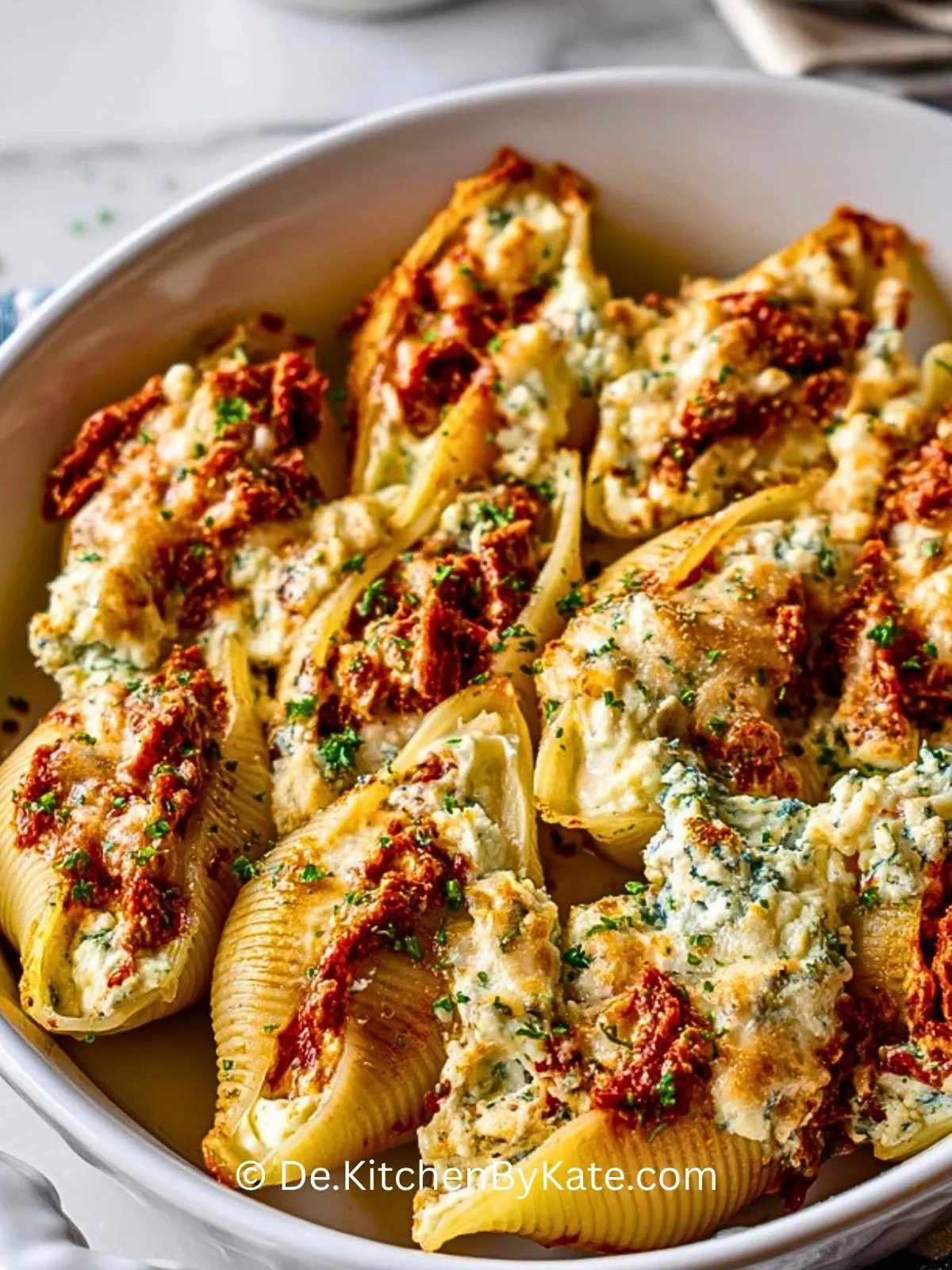 Cremige Gefüllte Muscheln Mit Getrockneten Tomaten Und Ricotta