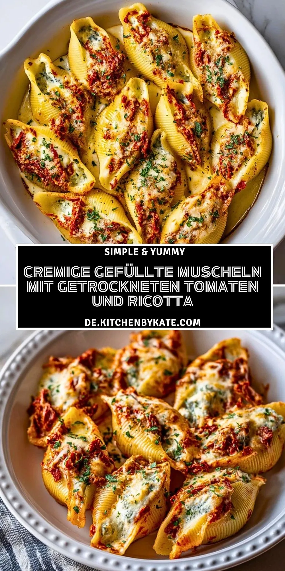 Keywords: gefüllte Muscheln, Ricotta, getrocknete Tomaten, Pasta aus dem Ofen, Ofengericht