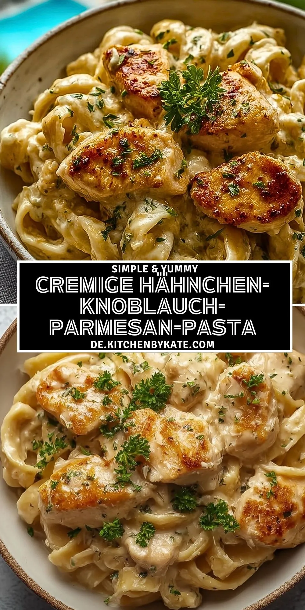 Diese cremige Hähnchen-Knoblauch-Parmesan-Pasta vereint zartes Hähnchen, intensive Knoblauchnoten und eine samtige Parmesansauce zu einem herrlich unkomplizierten Wohlfühlgericht, das schnell auf dem Tisch steht. Perfekt für jeden Tag, wenn du Lust auf echtes Comfort Food hast!
