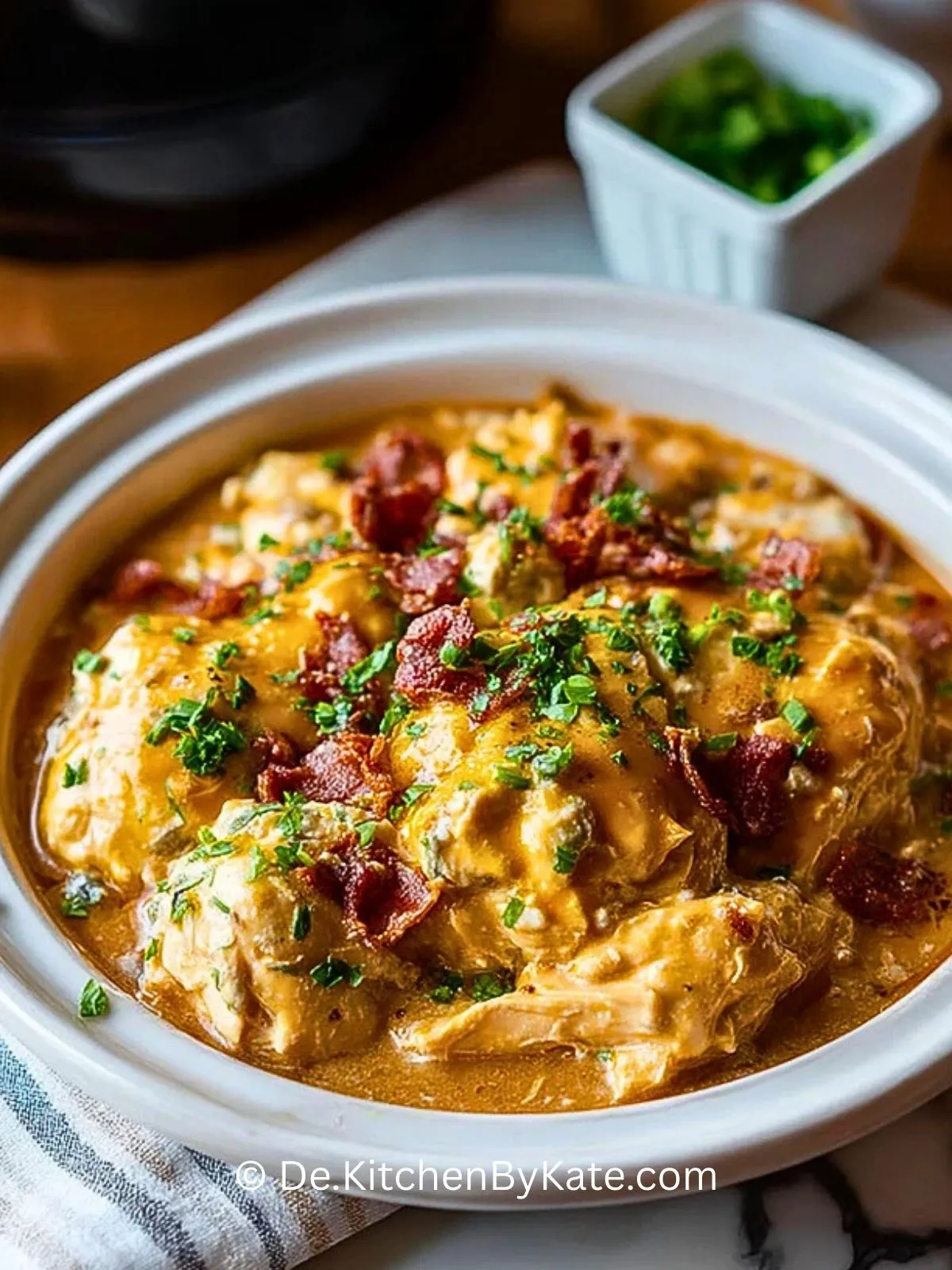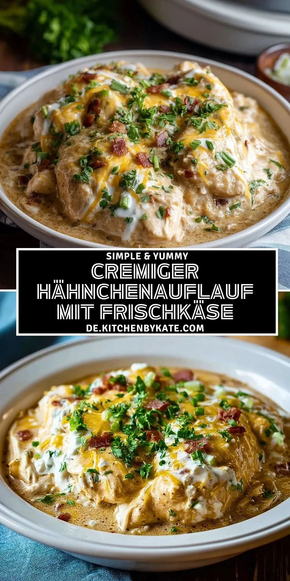 Cremiger Hähnchenauflauf mit Frischkäse ist ein herrlich unkompliziertes Wohlfühlgericht aus saftiger Hähnchenbrust, zarter Frischkäsesauce, knusprigem Speck und würzigem Käse. Perfekt für ein Familienessen, einfach vorzubereiten und immer ein Hit am Tisch!