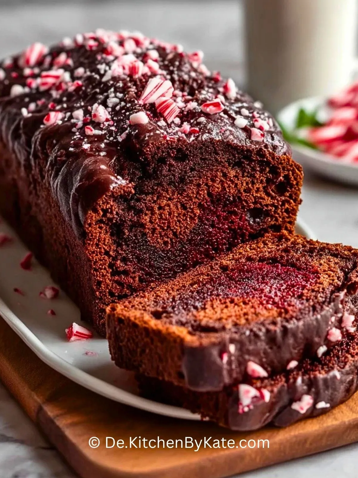 Besonders schön ist, dass dieses Brot gleichzeitig unkompliziert und beeindruckend ist. Es passt wunderbar in die Adventszeit, macht sich aber genauso gut als süße Aufmerksamkeit aus der Küche, zum Nachmittagskaffee oder als Dessert in Scheiben. Mit seinem weißen Guss und der dekorativen Pfefferminzkruste wirkt es sofort besonders, ohne dass die Zubereitung kompliziert wird.