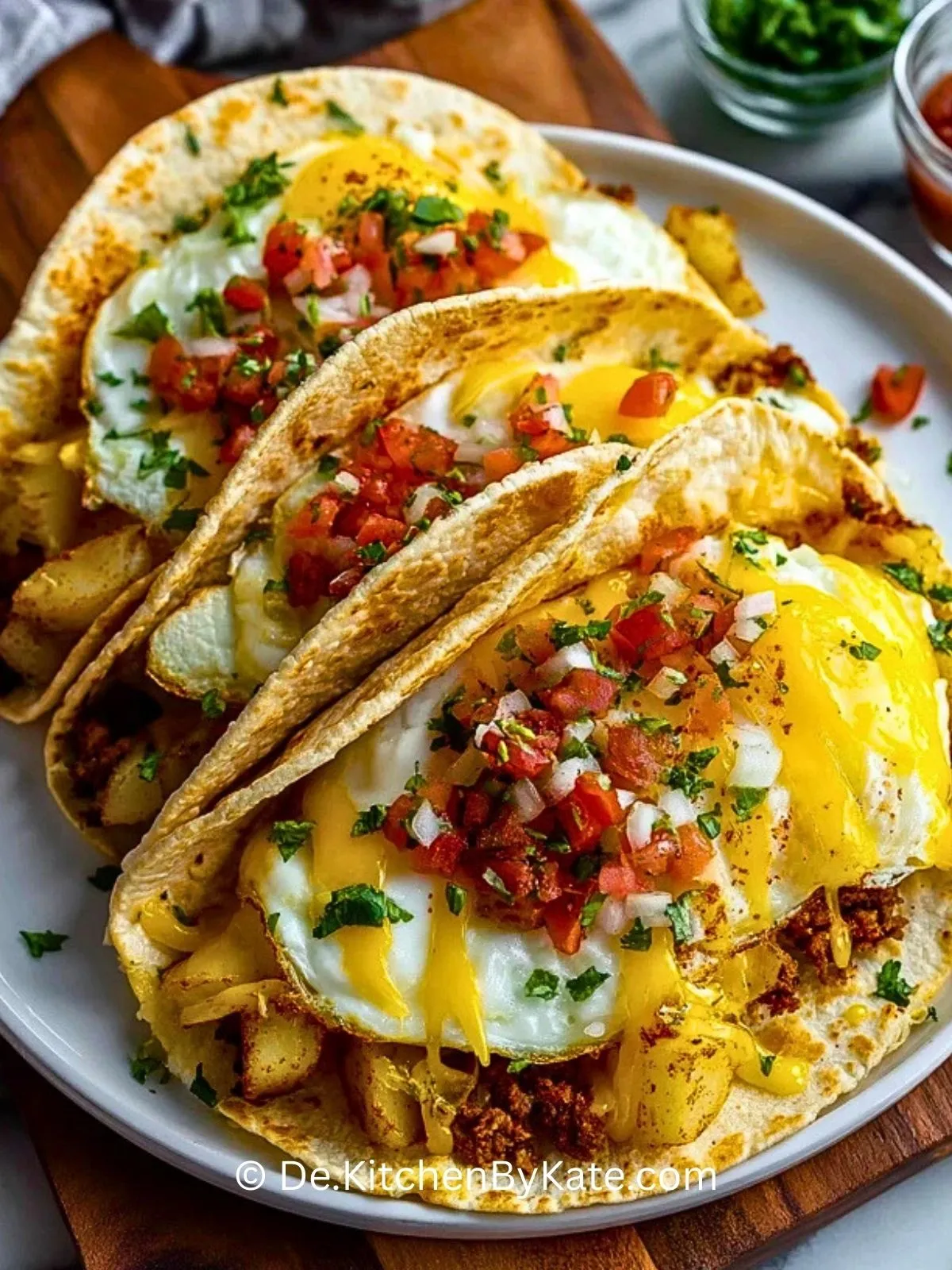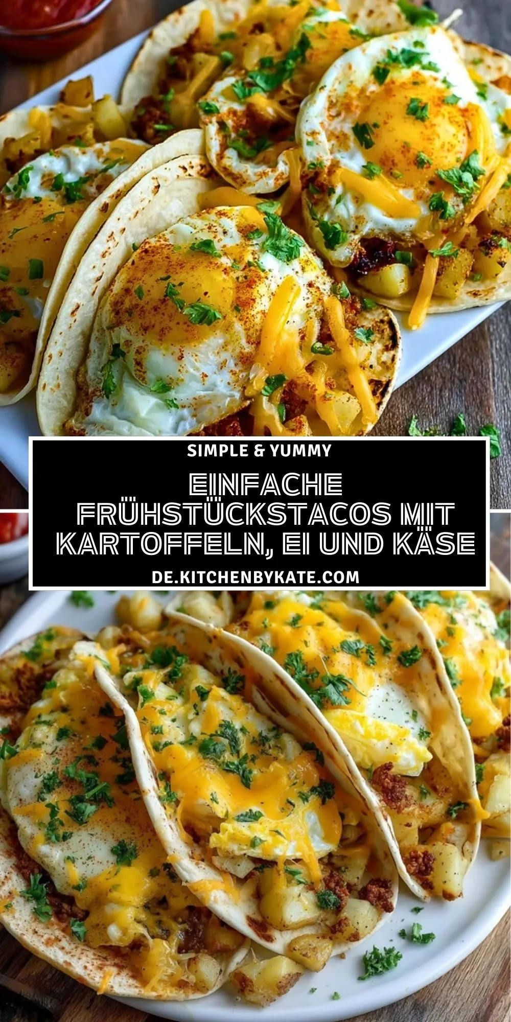 Herzhafte Frühstückstacos mit knusprigen Kartoffeln, Spiegelei und geschmolzenem Käse – perfekt für ein schnelles, sättigendes Frühstück oder den Brunch! Schnell gemacht und nach Lust und Laune variierbar.