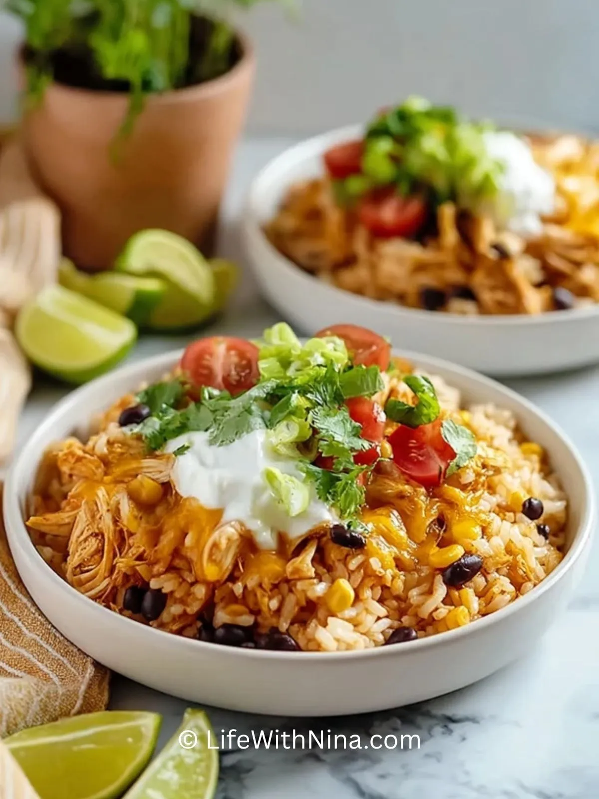 Einfache Hähnchen-Taco-Reis-Bowls sind ein schnelles, herzhaftes Gericht mit saftigem Hähnchen, lockerem Reis, schwarzen Bohnen, Mais und frischen Toppings. Dieses Rezept eignet sich perfekt für ein unkompliziertes Abendessen, für die Familie oder zum Vorbereiten für stressige Tage.