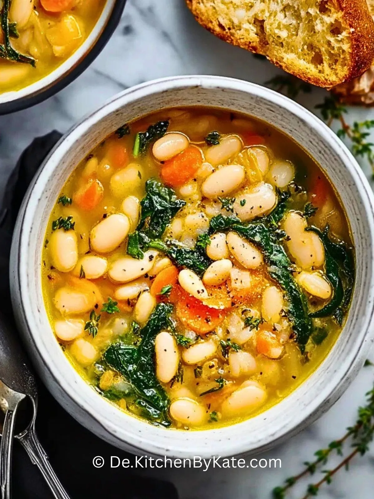 Die Kombination aus cremigen weißen Bohnen, einer klassischen italienischen Gemüsebasis aus Zwiebel, Karotte und Sellerie sowie mediterranen Kräutern wie Rosmarin und Thymian sorgt für Tiefe und Wärme im Geschmack, ohne dass du viele ausgefallene Zutaten brauchst. Durch den frischen Spinat und einen Spritzer Zitronensaft bekommt die Suppe außerdem eine leichte, frische Note – rustikal und trotzdem elegant.