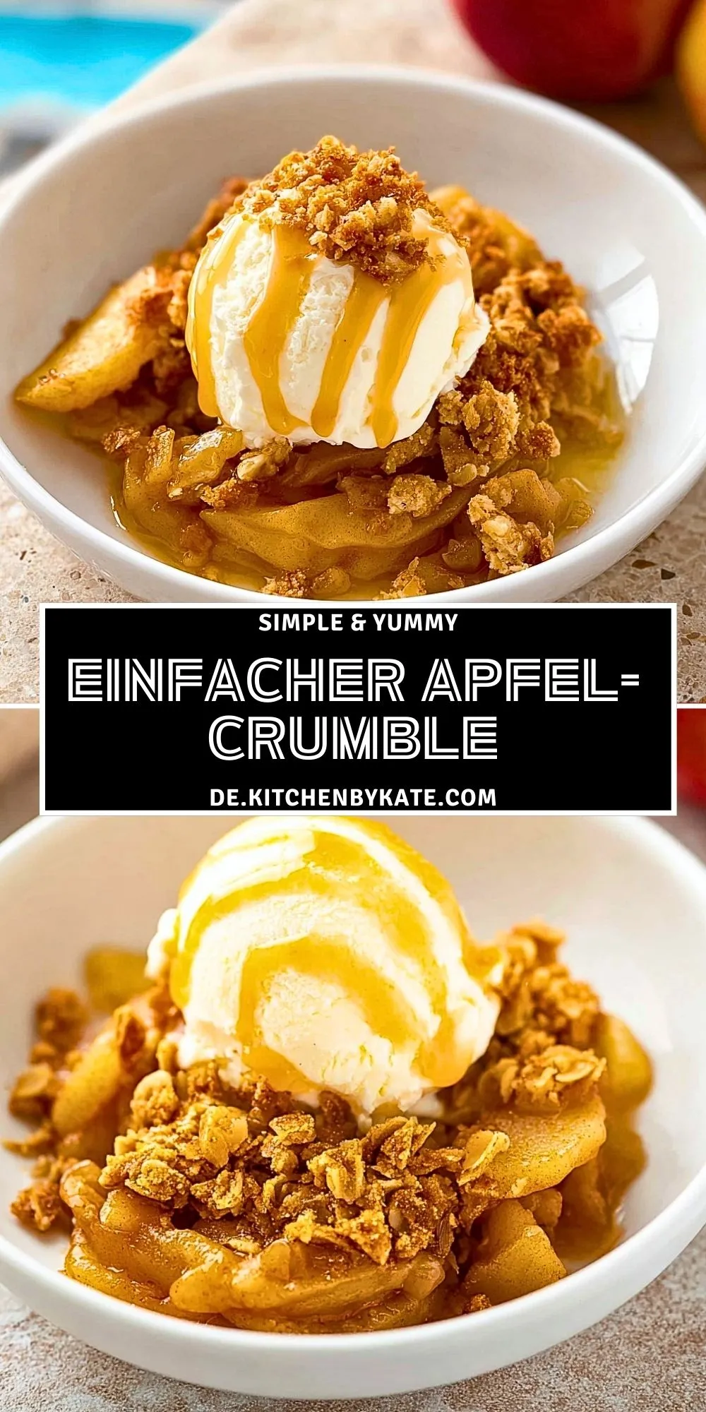 Ein warmer Apfel-Crumble ist das perfekte Wohlfühl-Dessert: knusprige Streusel treffen auf saftig gebackene Äpfel mit einem Hauch Zimt. Schnell gemacht, herrlich aromatisch und besonders lecker mit Vanilleeis oder frischer Schlagsahne. Ideal für gemütliche Nachmittage, als schnelles Familien-Dessert oder für Gäste!