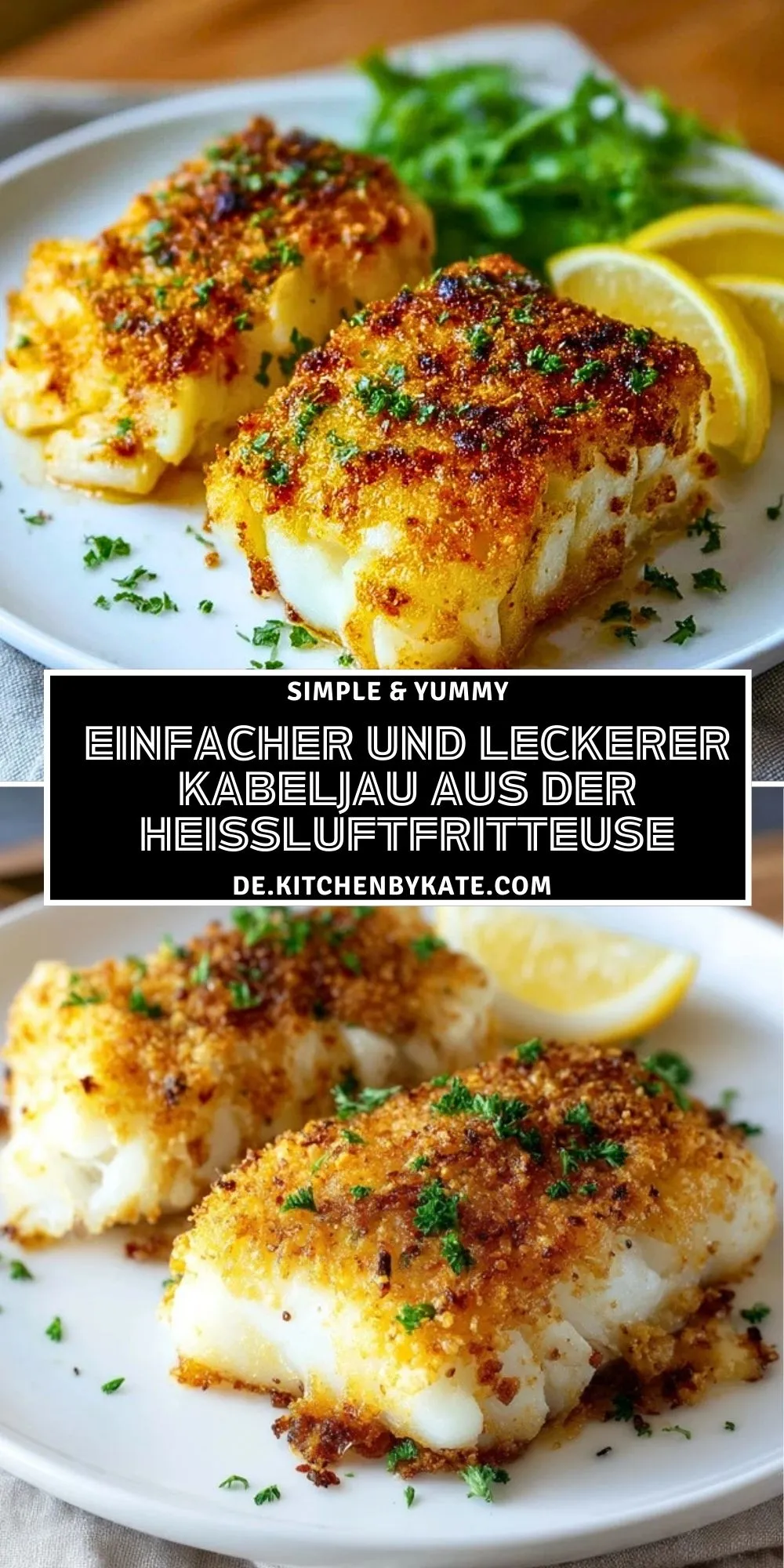 Saftiger Kabeljau mit goldknuspriger Kruste, ganz einfach und fettarm in der Heißluftfritteuse zubereitet. Perfekt für ein leichtes und schnelles Mittag- oder Abendessen, das nach Urlaub schmeckt!