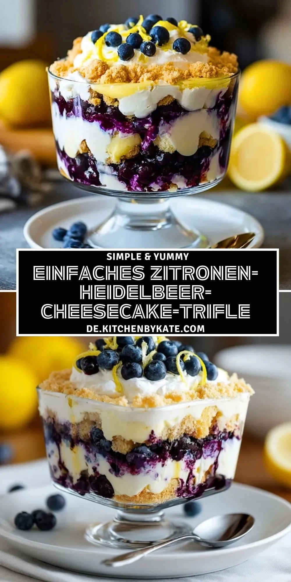So bereitest du Einfaches Zitronen-Heidelbeer-Cheesecake-Trifle zu