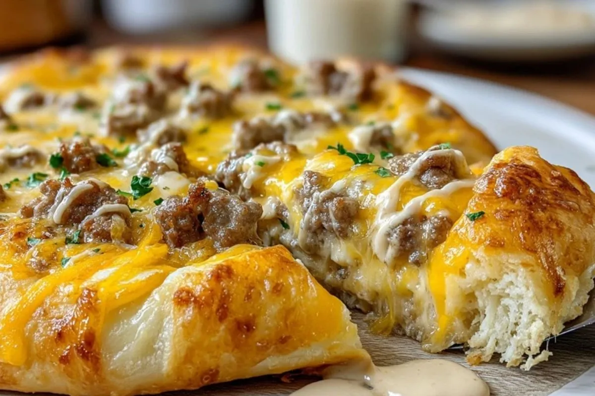 Würzige Wurstsoßen-Croissant-Rollen-Frühstückspizza