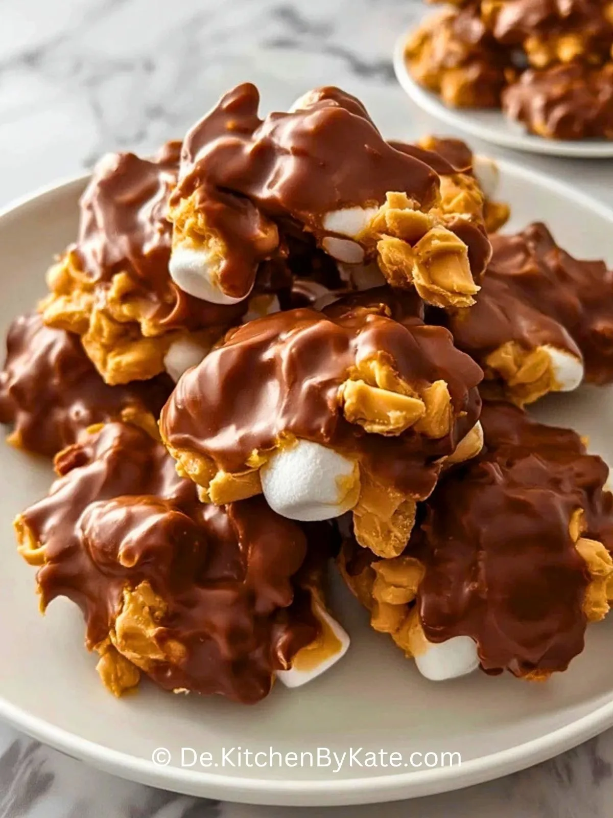 Weil sie mit wenig Aufwand eine besonders leckere Mischung aus verschiedenen Texturen bieten. Die Erdnüsse bringen Röstaroma und Biss, die Marshmallows eine weiche, luftige Süße, und die Schokolade verbindet alles zu kleinen Häufchen, die sättigend, hübsch und vielseitig zugleich sind. Außerdem lassen sie sich gut vorbereiten und schmecken sowohl frisch als auch nach ein oder zwei Tagen noch ausgezeichnet.
