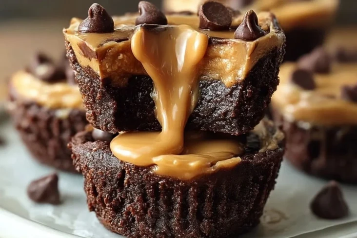 Diese Erdnussbutter-Brownie-Törtchen kombinieren saftigen Schokoladenteig mit einer cremigen Erdnussbutterfüllung und flüssigem Karamellkern – ein unwiderstehliches Dessert für Schoko- und Erdnussfans! Perfekt für Partys, zum Kaffee oder als süßer Snack.