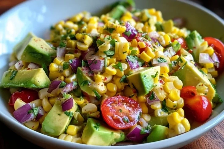 Dieser Fiesta-Mais-Avocado-Salat ist ein bunter, frischer Sommersalat mit süßem Mais, cremiger Avocado und knackigem Gemüse, der perfekt als leichte Mahlzeit oder Grillbeilage passt.