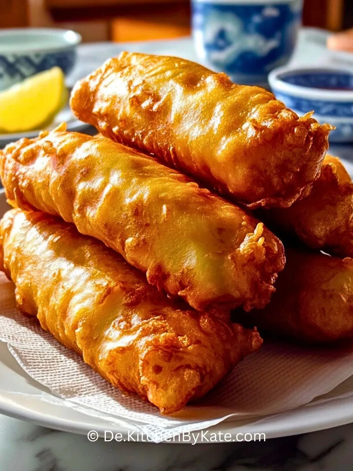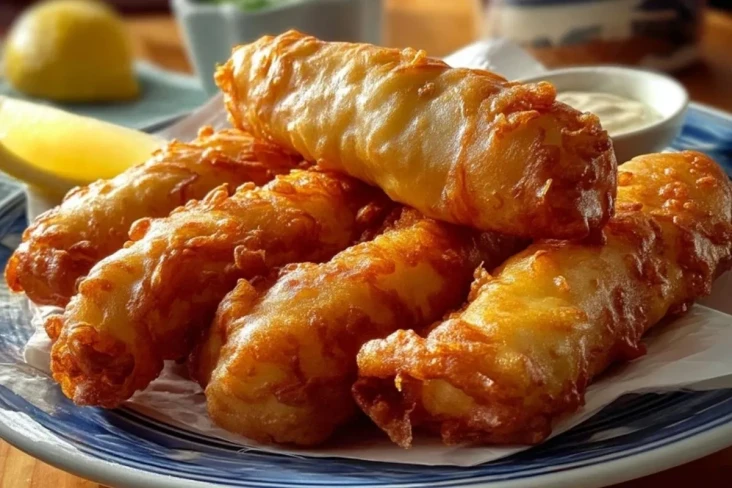 Knusprig-goldene frittierte Fischstäbchen mit saftigem, zartem Fischkern, umhüllt von einem luftigen Backteig und frisch serviert mit Zitronenspalten und einem cremigen Dip – ein selbstgemachtes Lieblingsgericht für die ganze Familie.