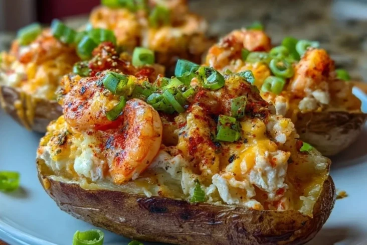Cremige, würzige Ofenkartoffeln mit saftigen Garnelen, feinem Krabbenfleisch und goldbraunem Käse – dieses Rezept ist herzhaft, aromatisch und ideal, wenn du etwas Besonderes servieren möchtest, das trotzdem unkompliziert umzusetzen ist. Die Kombination aus fluffiger Kartoffelfüllung, Cajun-Würze und überbackener Käsekruste macht jede Portion sättigend und unglaublich lecker.
