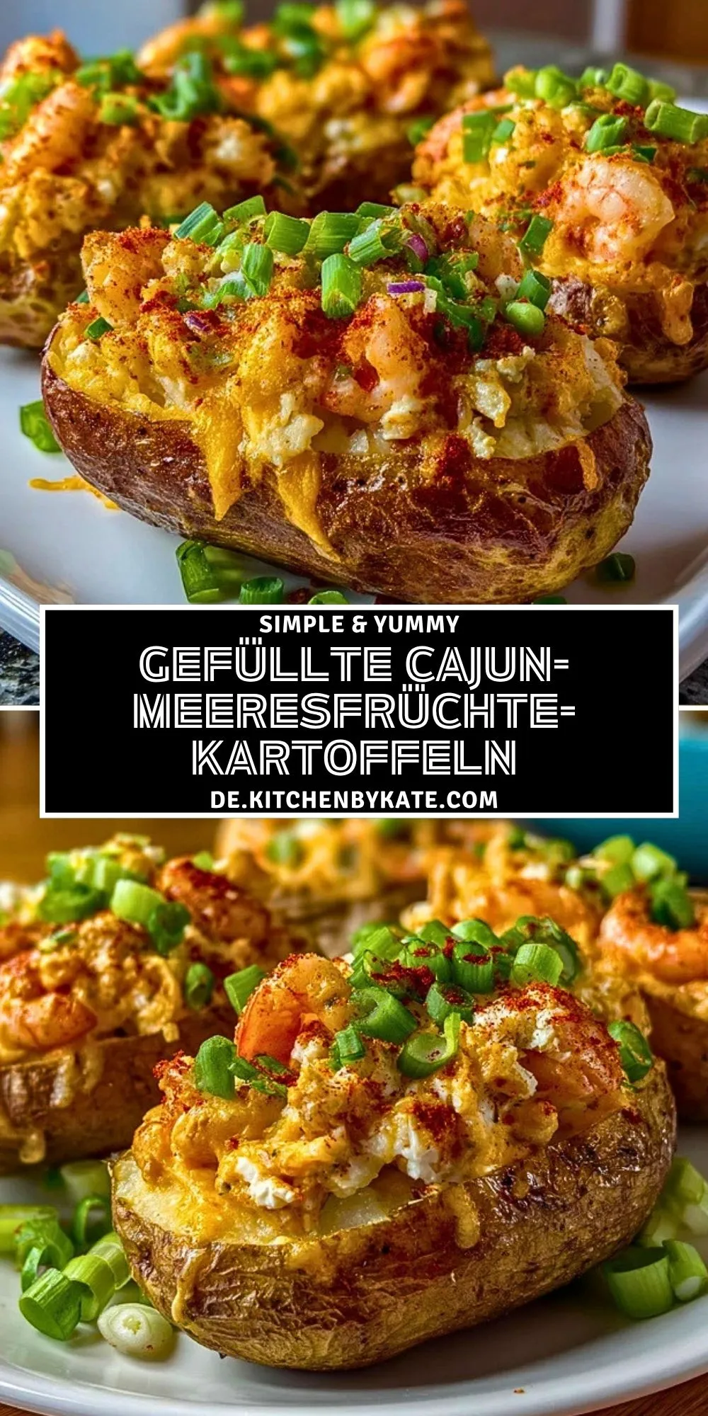 Keywords: Gefüllte Cajun-Meeresfrüchte-Kartoffeln, Ofenkartoffeln, Garnelen, Krabbenfleisch, Cajun