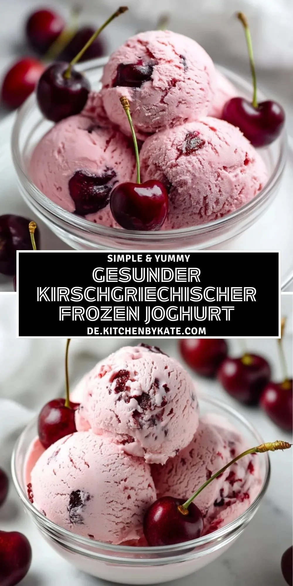 Cremiger, frischer Frozen Joghurt mit Kirschen – einfach, gesund und ohne Eismaschine! Perfekt für heiße Sommertage, kalorienarm, proteinreich und schnell gemacht.