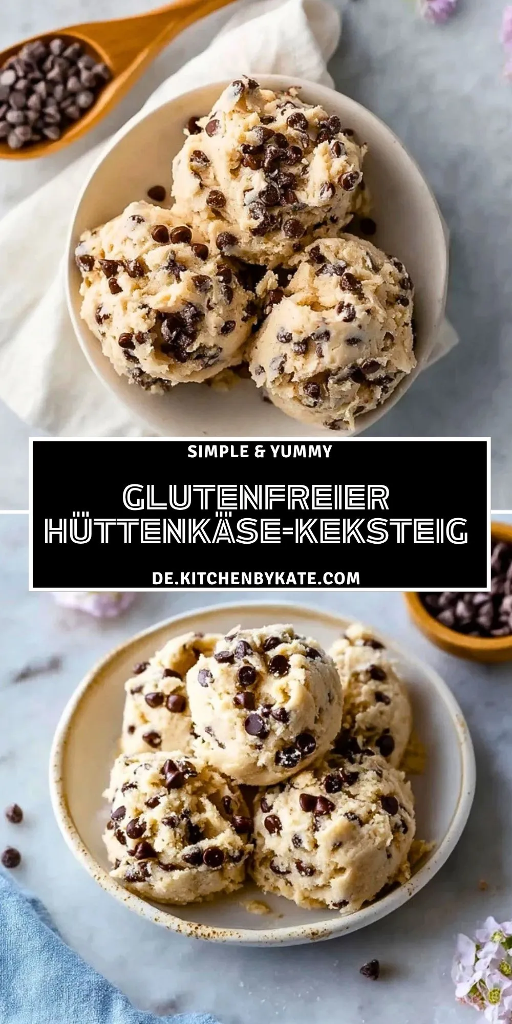Keywords: glutenfreier Hüttenkäse-Keksteig, Cookie Dough, Dessert ohne Backen, glutenfreies Dessert