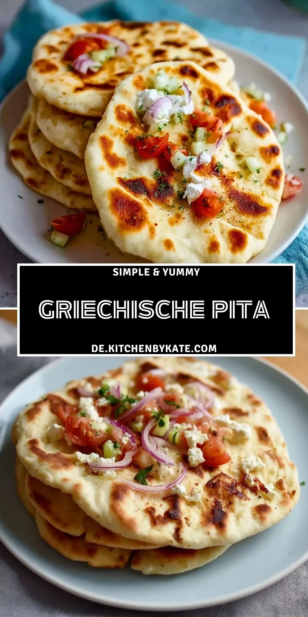 Diese Griechische Pita ist weich, goldbraun und perfekt zum Fuellen mit frischem Salat, Tomaten, Tzatziki oder herzhaften Beilagen. Der Teig ist unkompliziert, laesst sich wunderbar in der Pfanne ausbacken und ergibt fluffige Fladenbrote mit typisch mediterranem Geschmack.