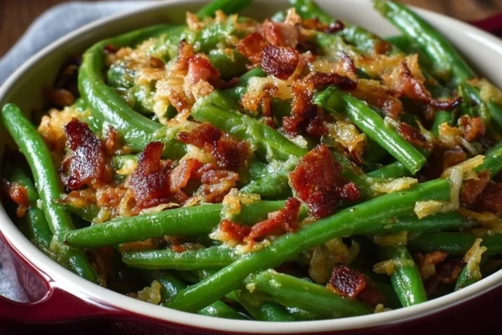 Knackige grüne Bohnen kombiniert mit kross gebratenem Speck und feinen Zwiebeln – das ist Hausmannskost, wie sie sein sollte. Dieses Rezept bringt das Beste aus einfachen Zutaten zusammen und sorgt für eine köstliche Beilage oder ein leichtes Hauptgericht, das immer gelingt!