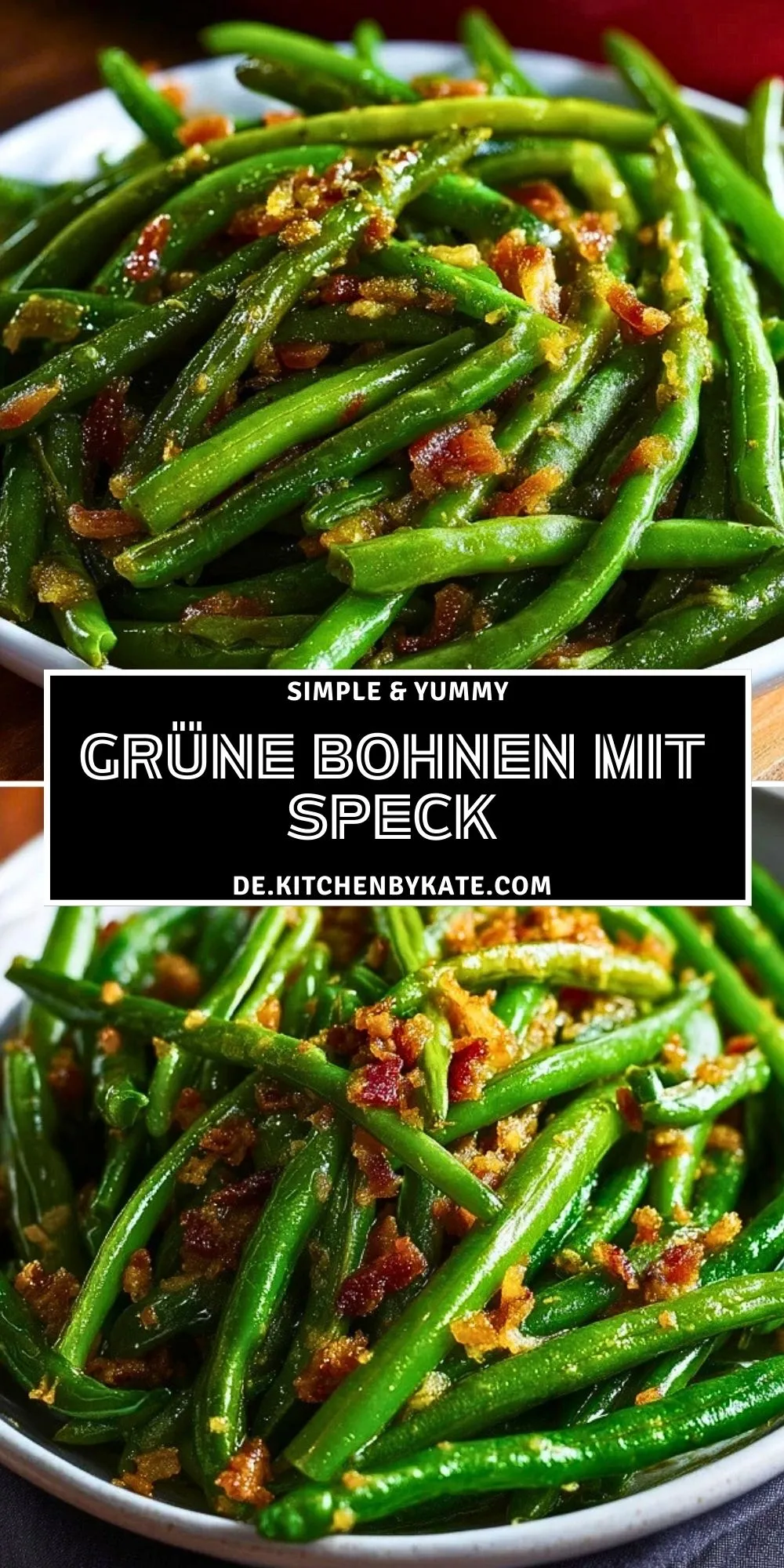 Knackige grüne Bohnen treffen auf würzigen, kross gebratenen Speck – ein Klassiker der deutschen Hausmannskost! Dieses Gericht bringt nicht nur Farbe auf den Teller, sondern überzeugt mit einem tollen Aroma und ist die perfekte Beilage zu Braten, Kartoffeln oder einfach als sättigende Hauptspeise.