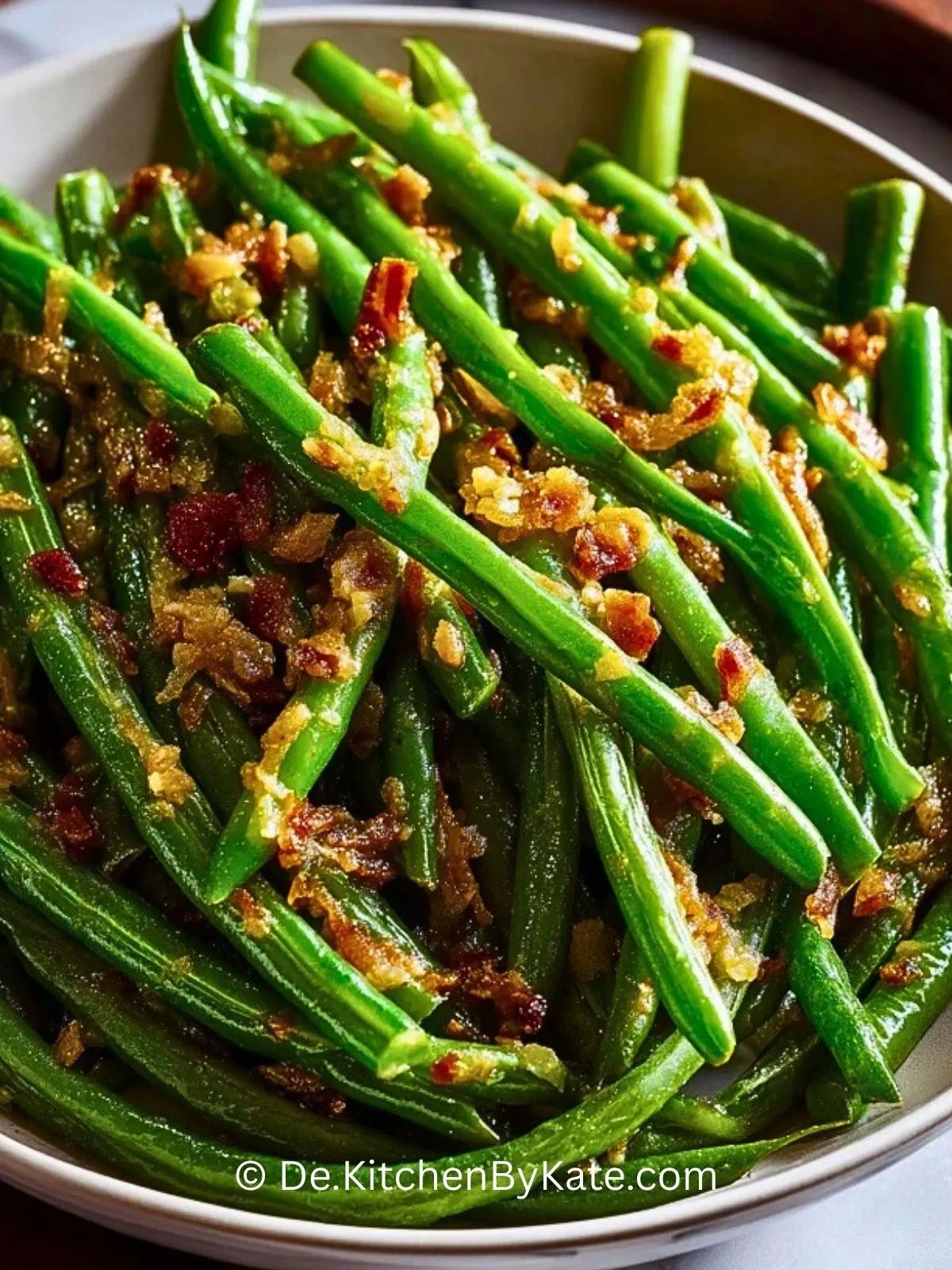 Knackige grüne Bohnen kombiniert mit kross gebratenem Speck und feinen Zwiebeln – das ist Hausmannskost, wie sie sein sollte. Dieses Rezept bringt das Beste aus einfachen Zutaten zusammen und sorgt für eine köstliche Beilage oder ein leichtes Hauptgericht, das immer gelingt!