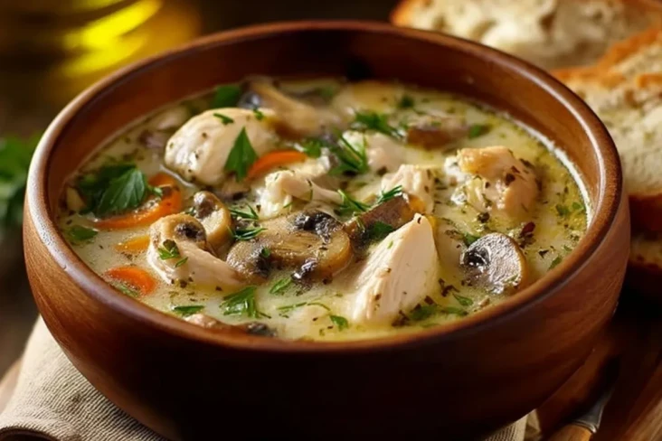 Diese Hähnchen-Pilzsuppe ist cremig, herzhaft und trotzdem angenehm leicht genug für ein unkompliziertes Abendessen. Zartes Hähnchenfleisch, aromatische Pilze, Möhren, Kräuter und eine milde Sahnebasis verbinden sich zu einer Suppe, die nach Hausmannskost schmeckt, aber nicht schwer im Magen liegt.
