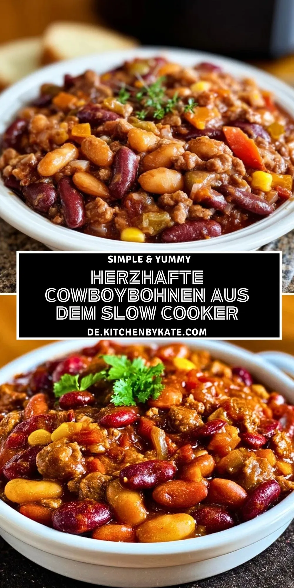 Wärmend, deftig und voller rustikaler Aromen: Cowboybohnen aus dem Slow Cooker sind das perfekte Wohlfühlessen für kalte Tage oder gesellige Abende mit Freunden. Die Kombination aus zarten Bohnen, würzigem Hackfleisch, Mais und einer herzhaften Tomatensoße sorgt für echten Genuss – und das ganz ohne viel Aufwand. Einfach alles in den Slow Cooker geben, den Rest erledigt die Zeit.
