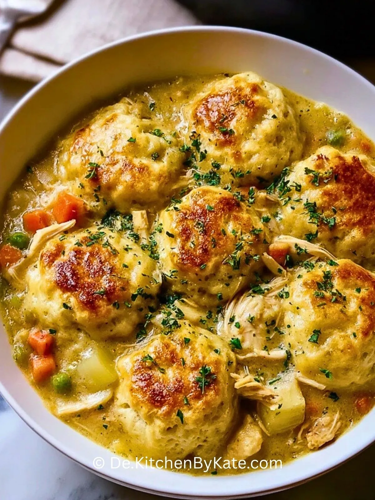 Herzhafte Hähnchen und Knödel mit Biscuits