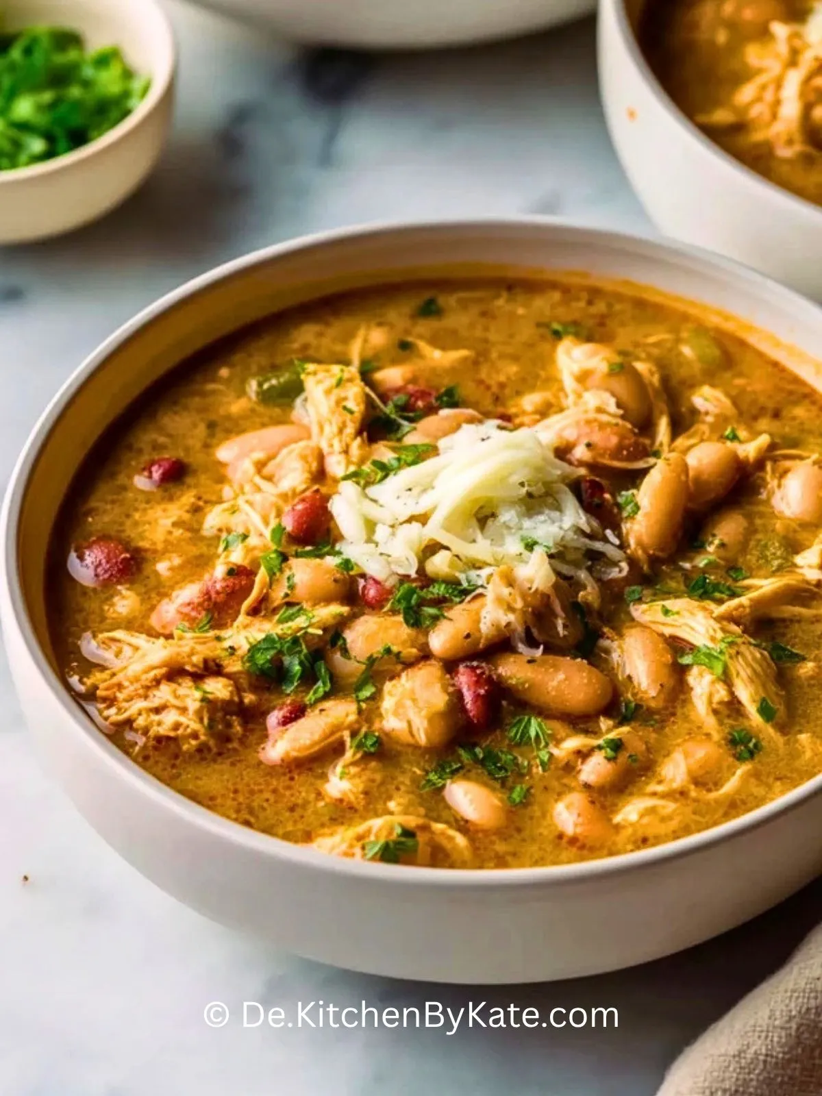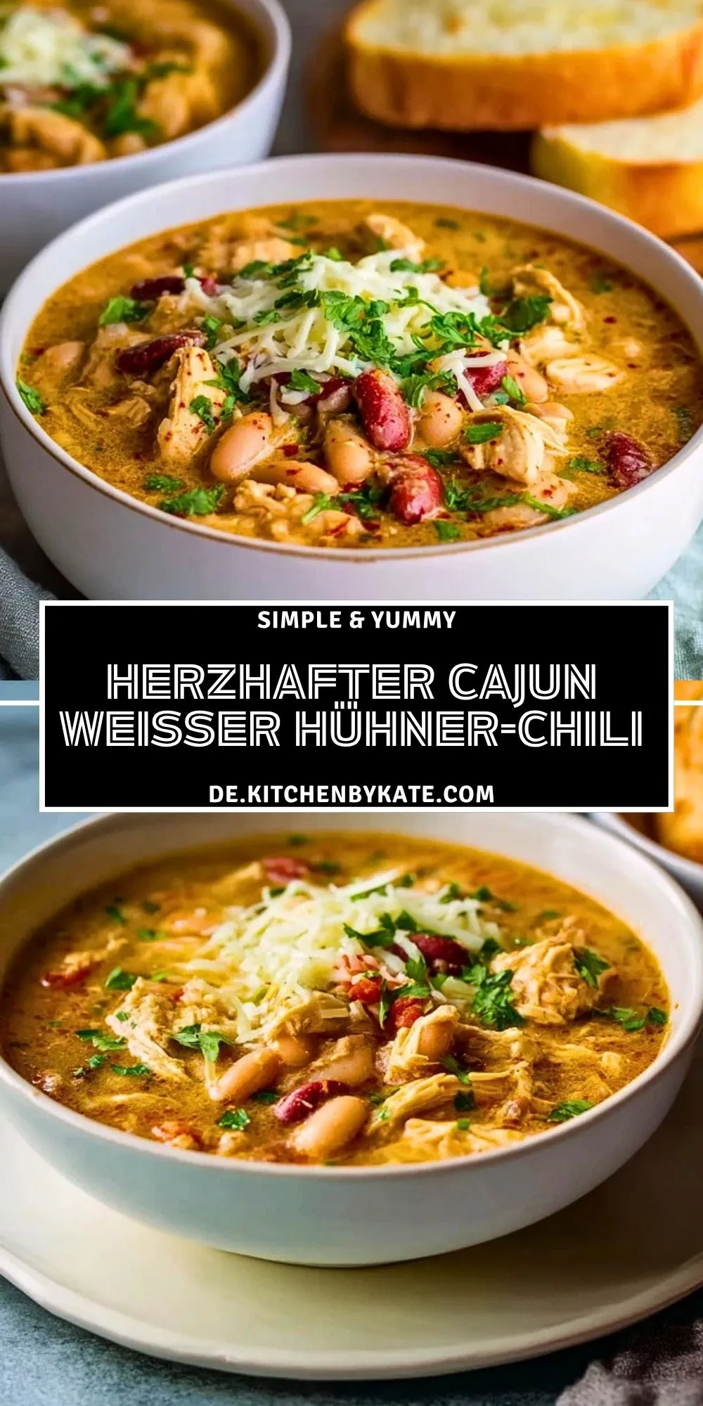 Ein cremiger, würziger und wunderbar sättigender Chili mit zartem Hähnchen, weißen Bohnen und kräftiger Cajun-Note. Dieses Rezept ist ideal für kühle Tage, lässt sich gut vorbereiten und schmeckt mit Käse, frischen Kräutern und etwas Jalapeño besonders aromatisch.