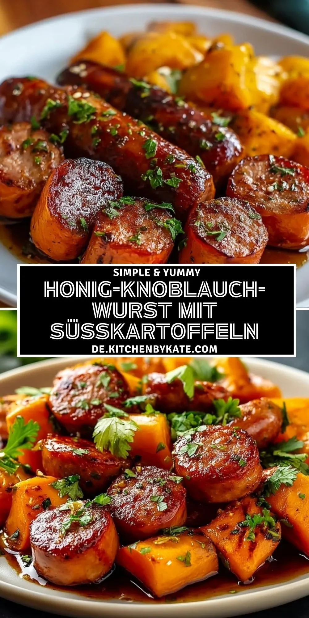 Keywords: Honig, Wurst, Süßkartoffeln, Ofengericht, Abendessen, herzhaft