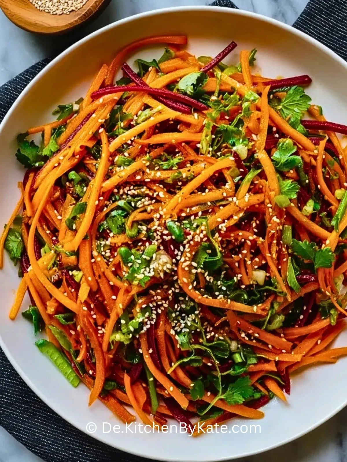 Ein frischer Karotten-Sesam-Salat ist die perfekte Mischung aus knackigem Gemüse, aromatischem Sesam und einem Hauch asiatischer Inspiration. Die Kombination aus süßen Karotten, würzigem Rucola und einem leichten, leicht nussigen Dressing macht diesen Salat zu einer idealen Beilage – oder auch als Hauptgericht, wenn es leicht und gesund sein soll.