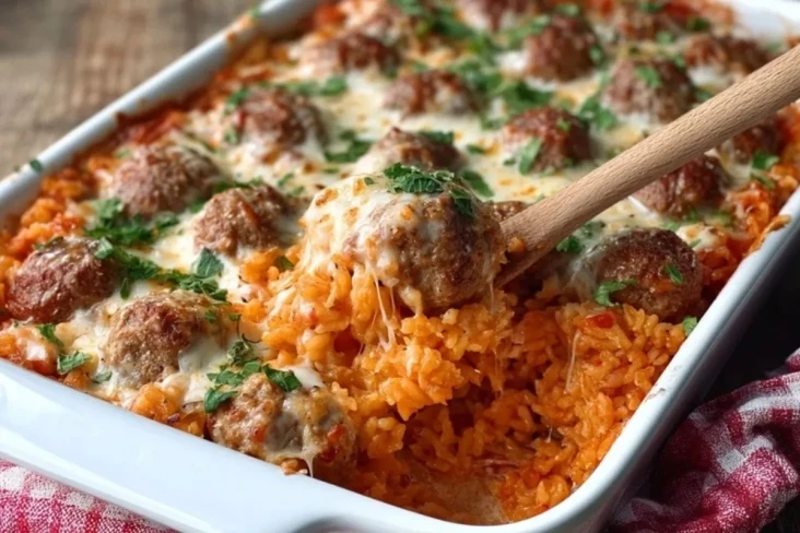 Herzhafter Käse-Hackbällchen-Reisauflauf: Saftige Hackbällchen treffen auf würzigen Tomatenreis und werden von einer goldenen Käseschicht überbacken. Das perfekte Wohlfühlgericht für die ganze Familie – schnell vorbereitet, aromatisch, sättigend und besonders beliebt an kalten Tagen.
