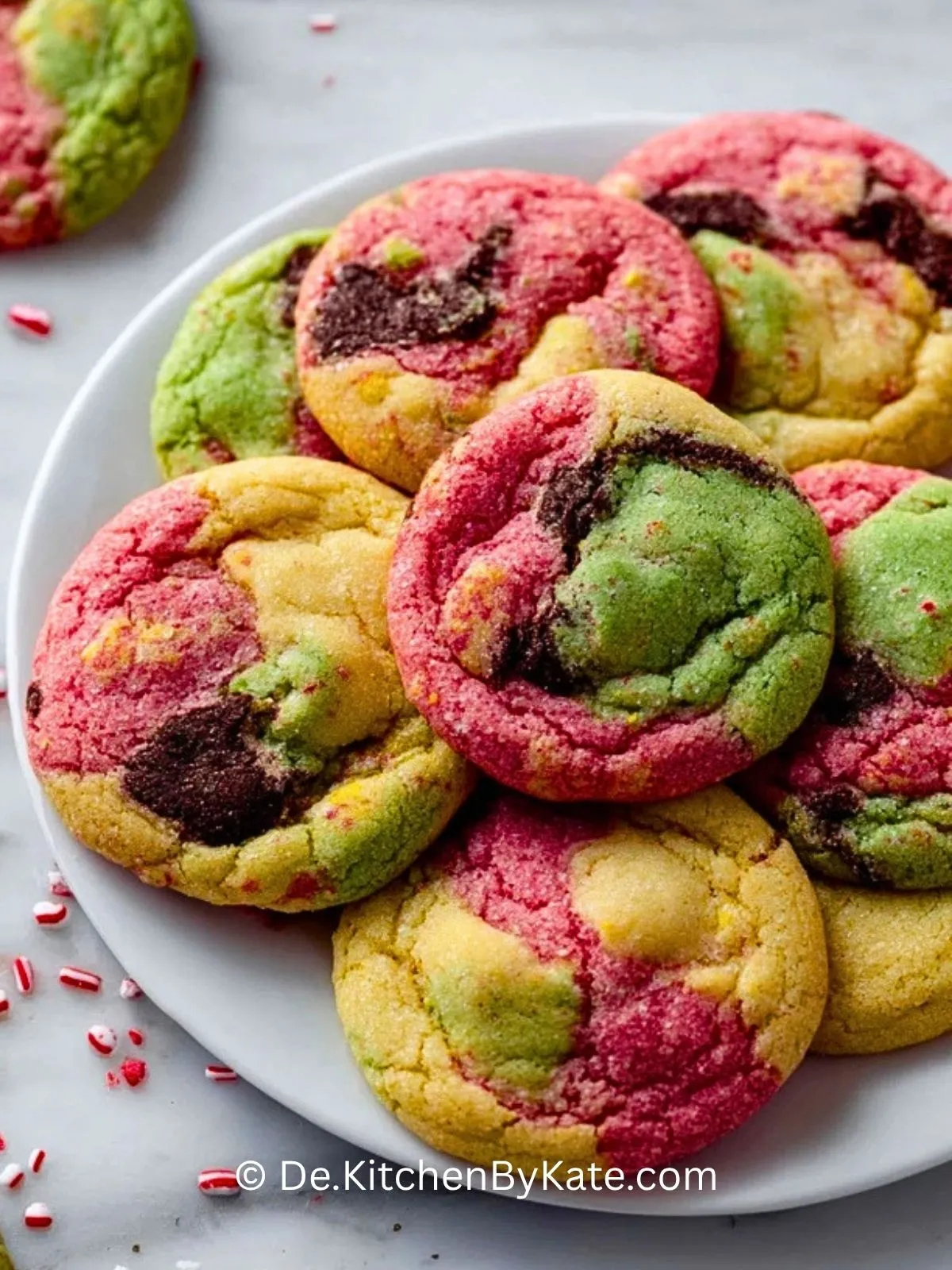 Weiche, bunte Spumoni-Kekse mit Vanille, Pistazien, Kirschen und Schokolade sind ein besonderer Blickfang für Feiertage, Kaffeerunden und bunte Plätzchenteller. Die marmorierte Optik macht sie außergewöhnlich, während ihr zarter Kern und die feine Zuckerschicht außen für eine herrlich weiche, leicht festliche Keksstruktur sorgen.