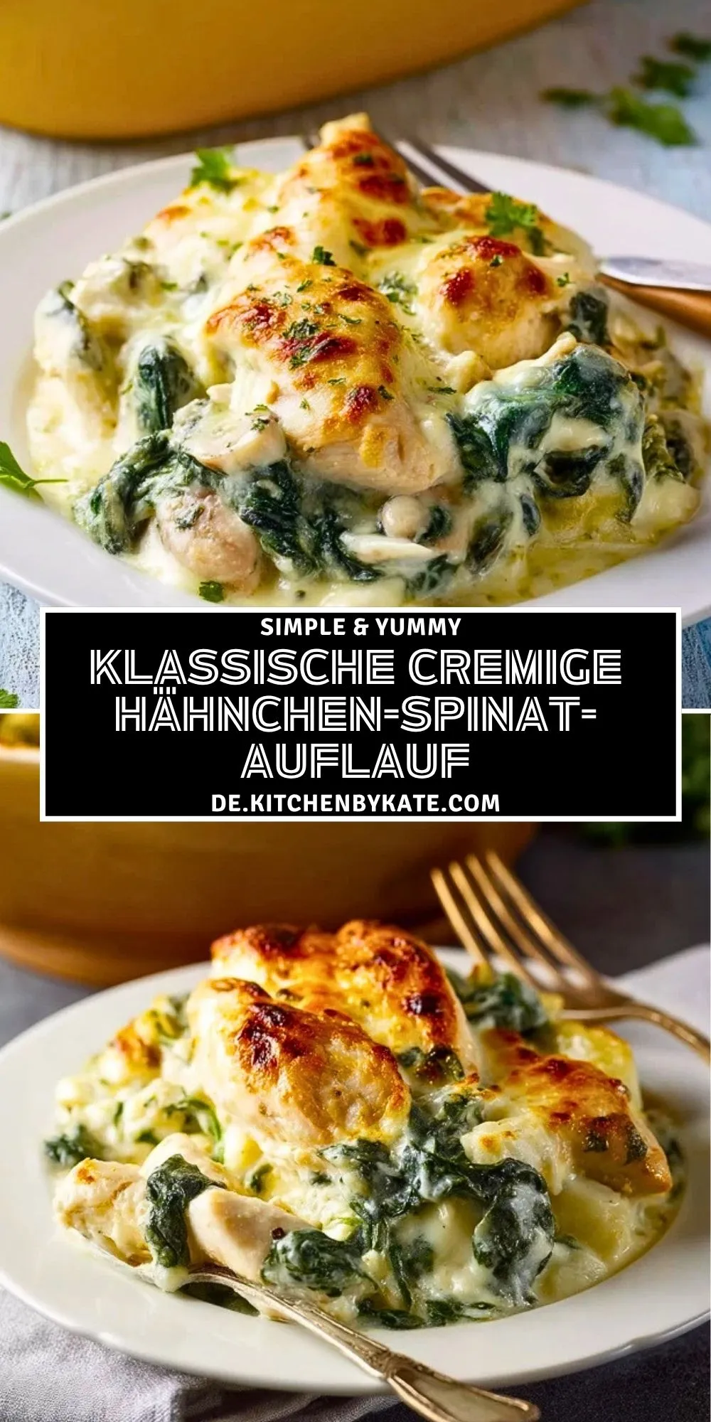 Keywords: Hähnchen-Spinat-Auflauf, cremiger Auflauf, Hähnchen mit Spinat, Auflauf mit Käse