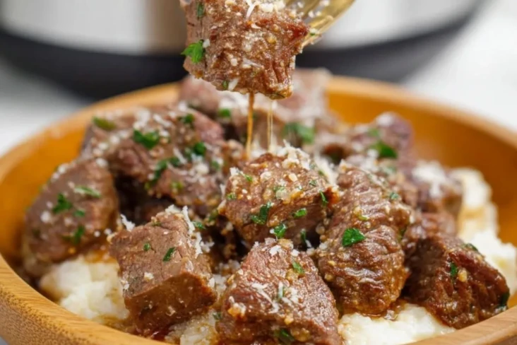 Knoblauch Parmesan Rinderbissen aus dem Slow Cooker