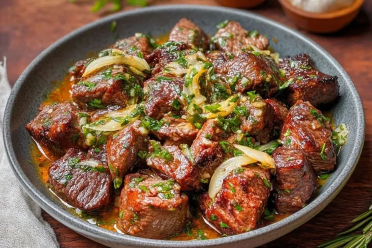 Zarte Rinderbissen in aromatischer Knoblauchbutter – dieses Gericht bringt Steakhaus-Feeling direkt nach Hause! Die saftigen Fleischwürfel werden scharf angebraten, dann mit viel frischem Knoblauch, Zwiebeln und Kräutern in einer cremigen Buttersoße vollendet. Perfekt für ein gemütliches Abendessen oder als Highlight beim nächsten Dinner mit Freunden.