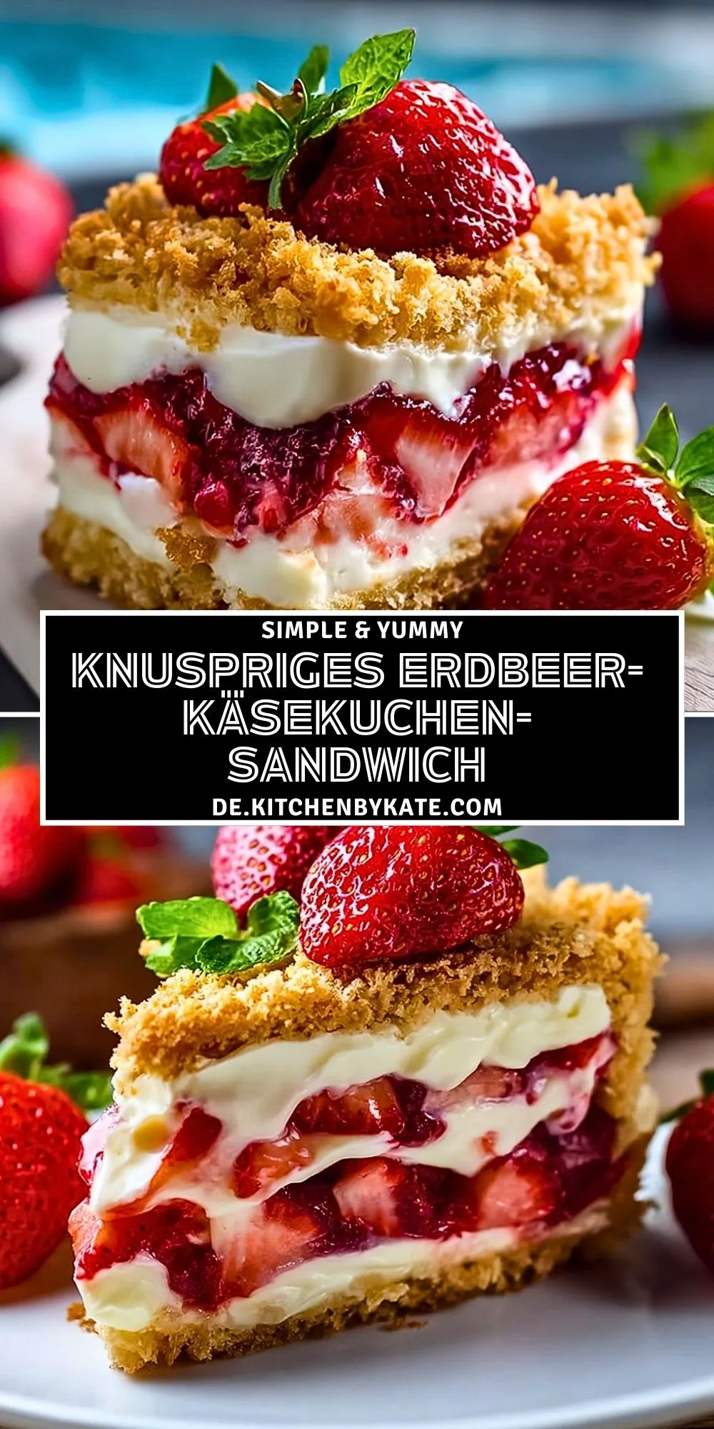 Dieses Knusprige Erdbeer-Käsekuchen-Sandwich verbindet frische Erdbeeren, cremige Käsekuchenfüllung und knusprige Butterstreusel in einem unwiderstehlichen Sommerdessert. Perfekt gekühlt serviert, begeistert es bei jedem Anlass und bringt den Geschmack von Erdbeeren und Vanille auf köstliche Weise zur Geltung.